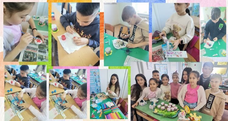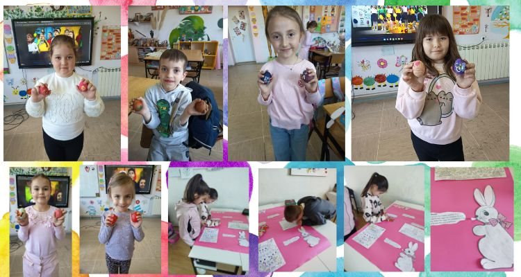 Учениците од четврто одделение изработуваа креативни корпи за јајца и ги украсуваа со голема посветеност, додека најмладите, учениците од прво и второ одделение, покрај бројните изработки и декорираните јајца, весело ни го честитаа празникот.