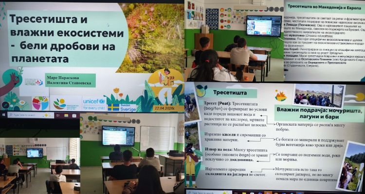 На 22 април, Меѓународниот ден на планетата Земја, нашите ученици од осмо одделение наместо во вообичаените училници, се префрлија во дигиталниот свет на Мрежата за искуствено учење (МИУ). По повод овој важен датум, тие следеа исклучително поучно онлајн предавање посветено на една често заборавена, но критично важна тема: тресетиштата и влажните екосистеми.
